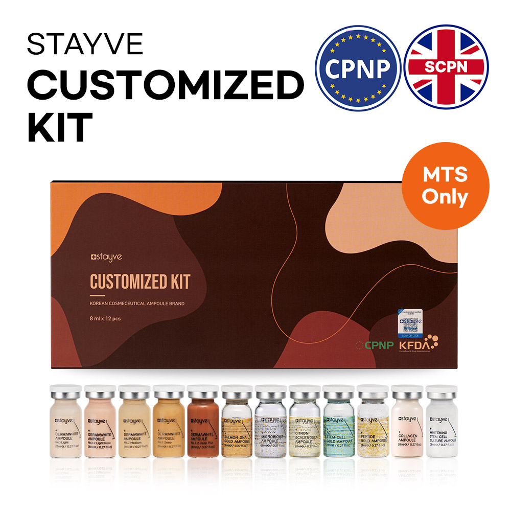 BB Glow Customized Kit STAYVE Kit includes 12 ampoules of 4 different shades pigments and 5 different boosters of the BB Glow Stayve Ampoules in one box for an easy use.