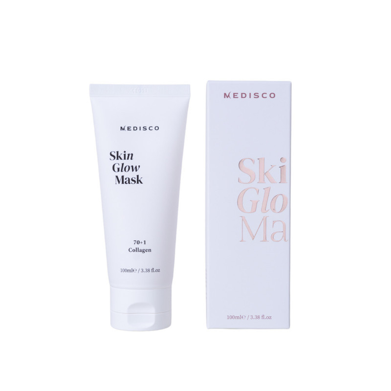 The SkinGlow Mask from Medisco is enriched with a specialized 300 Da low molecular weight collagen.